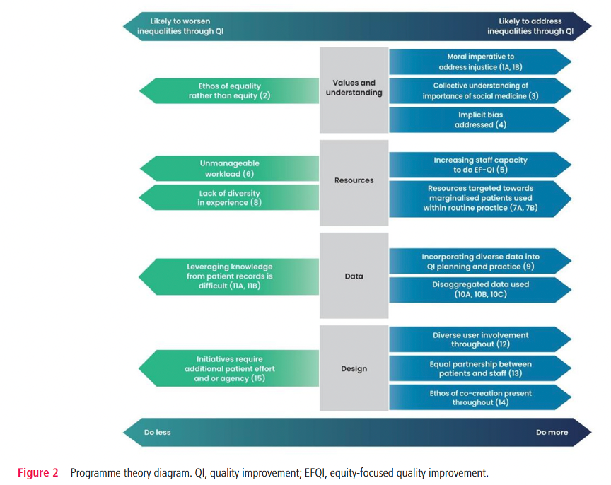 Johnson LL, Wong G, Kuhn I, et al. A realist review of how, why, for whom and in which contexts quality improvement in healthcare impacts inequalities. BMJ Qual Saf. 2025;34(8):537-546