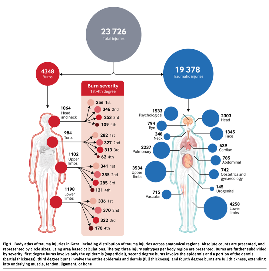 El-Taji O, Ali A, Alser O, et al. Patterns of war related trauma in Gaza during armed conflict: survey study of international healthcare workers. BMJ. 2025;390:e087524