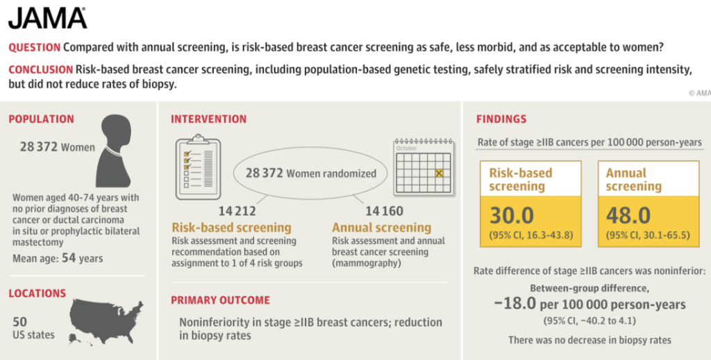 Esserman LJ, Fiscalini AS, Naeim A, et al. Risk-based vs annual breast cancer screening: the WISDOM randomized clinical trial. JAMA. 2026;335(9):763-774.